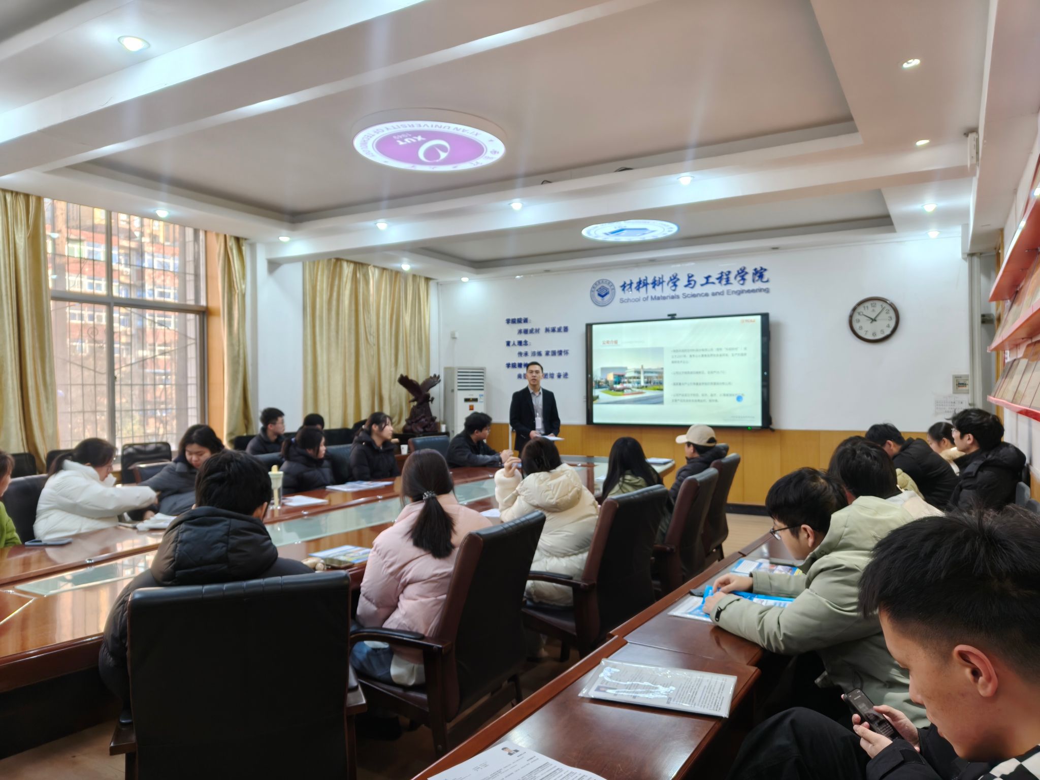 为促进2026届毕业生高质量就业,材料学院精准对接行业领军企业,搭建校企人才对接平台。12月26日,天成航空材料股份有限公司(以下简称:天成航材)走进材料学院,为2026届毕业生举办专场招聘宣讲会。本次招聘吸引材料类及相关专业学生参与,现场气氛热烈。