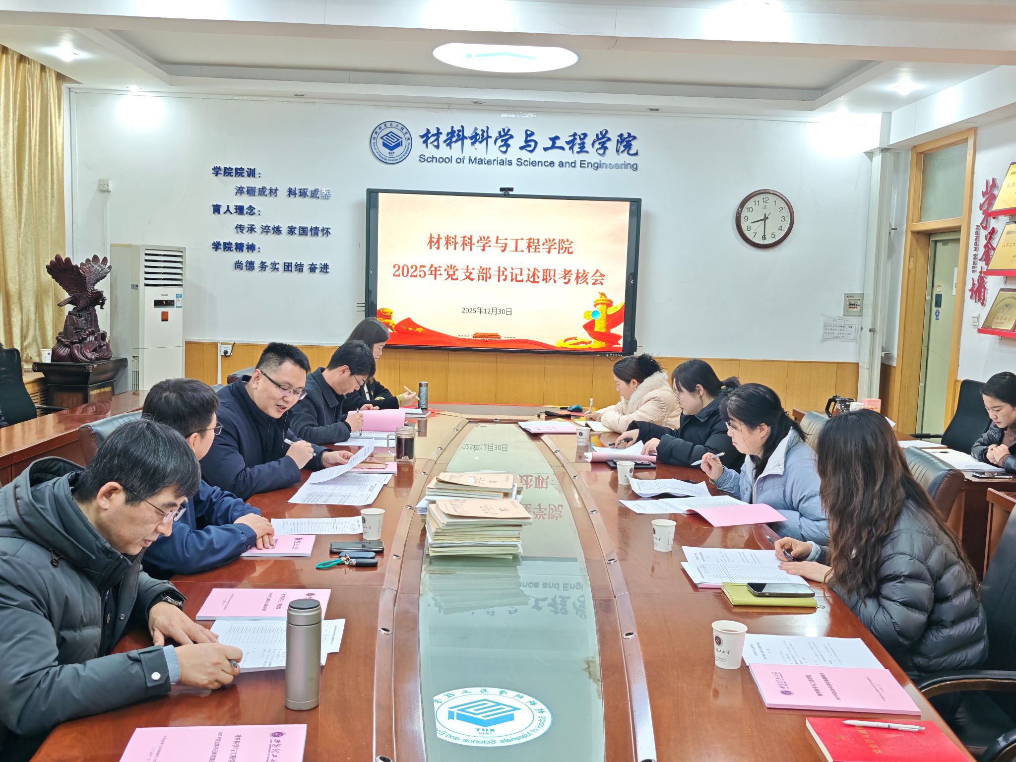 为进一步提升学院党支部书记履职能力和水平,加强工作交流,推动全面从严治党向基层延伸,2025年12月30日上午,材料科学与工程学院在学院会议室召开了2025年度党支部书记述职考核会。校党委委员、教师工作部部长郭鹏程出席指导,学院党委委员、学生党建工作负责人、全体党支部书记参加了会议,会议由学院党委书记邹军涛主持。