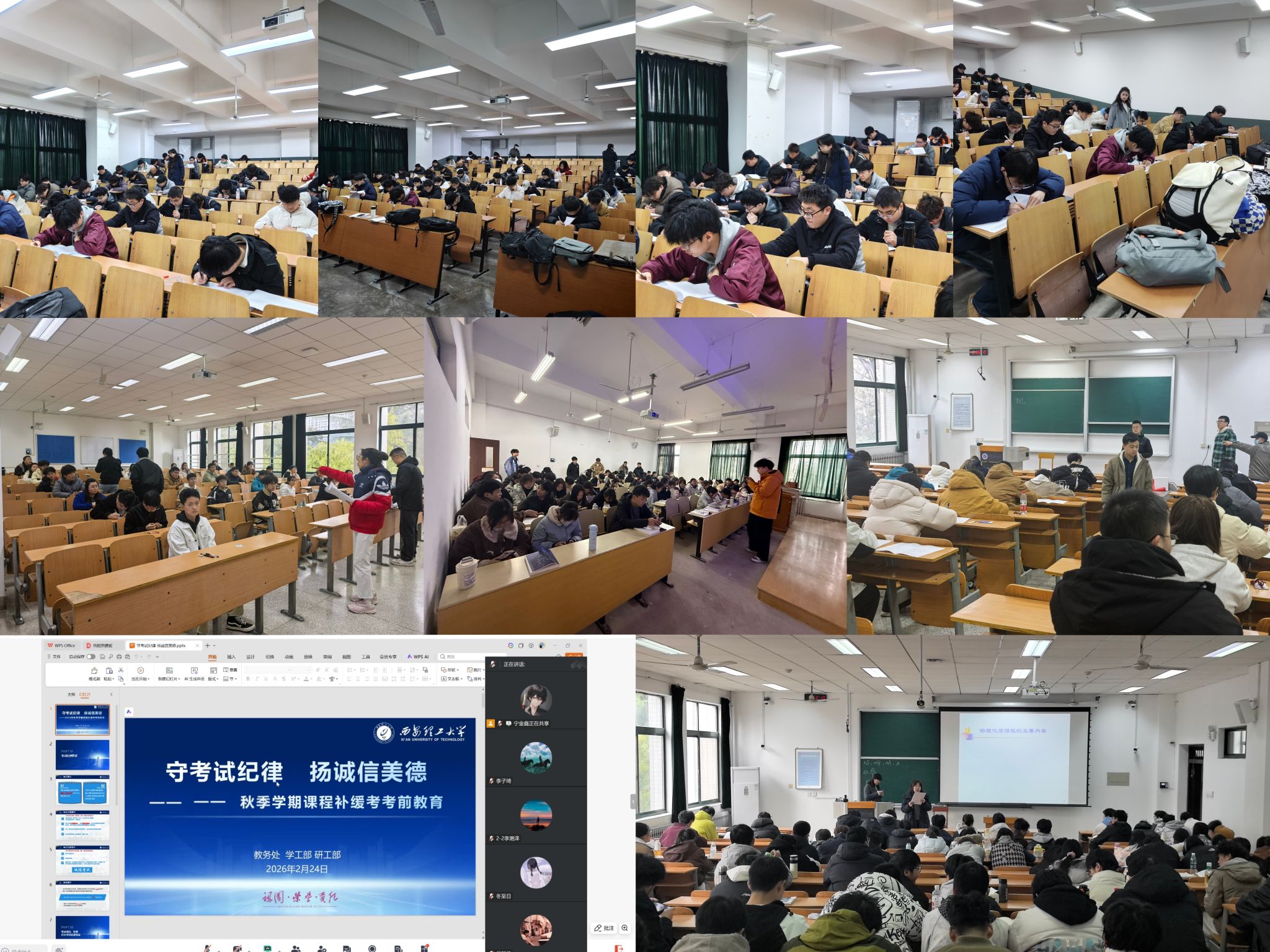补考前,各年级辅导员组织召开诚信考试教育主题班会,引导学生增强纪律意识,自觉遵守考试纪律。巡考过程中,辅导员在考场内逐一点名核到考情况,对未到考学生即刻前往宿舍核实,及时协调督促缺考学生尽快参考。