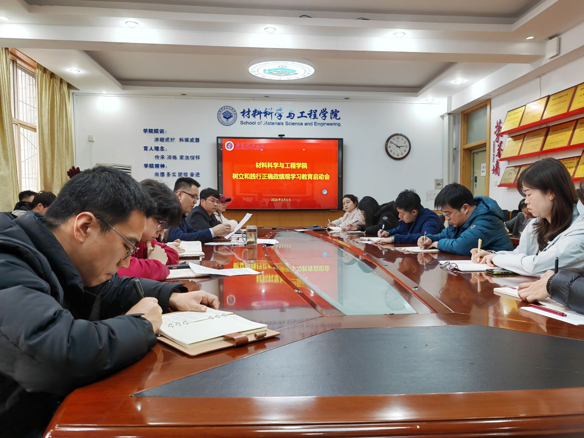 为深入贯彻落实党中央及学校党委关于树立和践行正确政绩观的部署要求,进一步压实基层党组织工作责任,2026年3月6日下午,材料科学与工程学院在学院会议室召开了树立和践行正确政绩观学习教育启动会暨2026年第2次党支部书记例会。学院党委书记邹军涛、副书记杨少博、组织员刘艾京、学生党建工作负责人及全体党支部书记参加会议,会议由学院党委书记邹军涛主持。