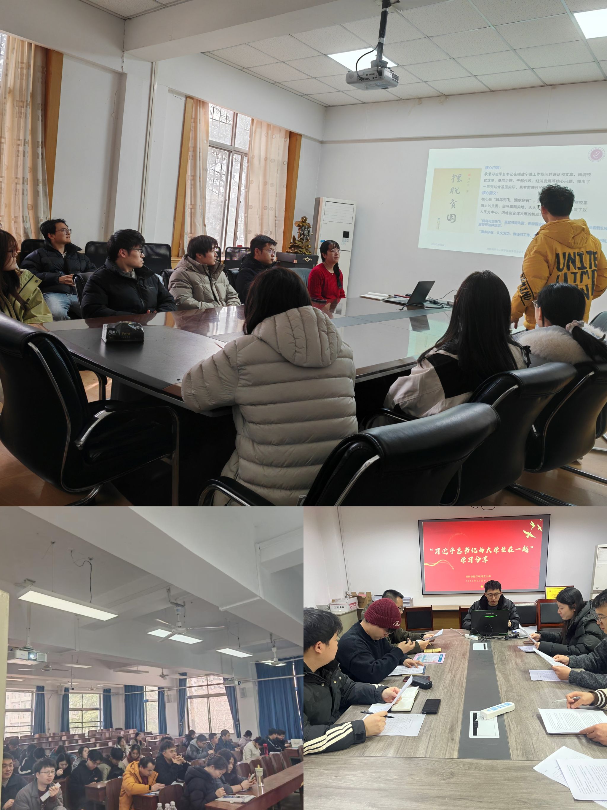 3月9日至11日,材料科学与工程学院以各年级为单位,由辅导员牵头开展“品领袖华章 悟砺材初心 担青春使命”主题读书会。各年级学子认真研读《习近平的七年知青岁月》《摆脱贫困》《习近平在正定》等书目,辅导员结合材料学科特点,引导学子分享读书心得、深化对著作内涵的理解。