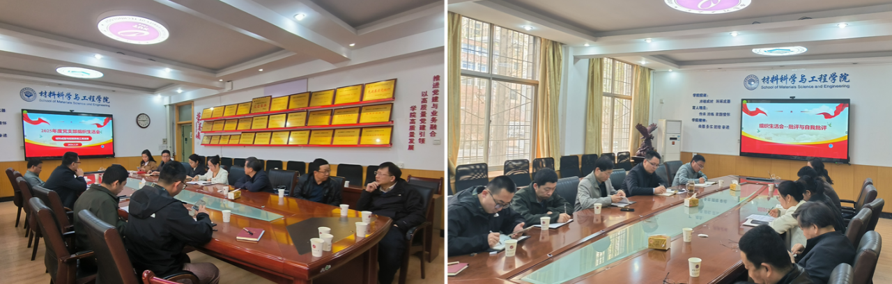 3月25日下午,材料学院材料成型与控制系教工党支部在学院会议室召开2025年度组织生活会暨民主评议党员会议,支部党员、学院党委书记邹军涛参会并指导,会议由支部书记赵娜娜主持,全体党员参会。