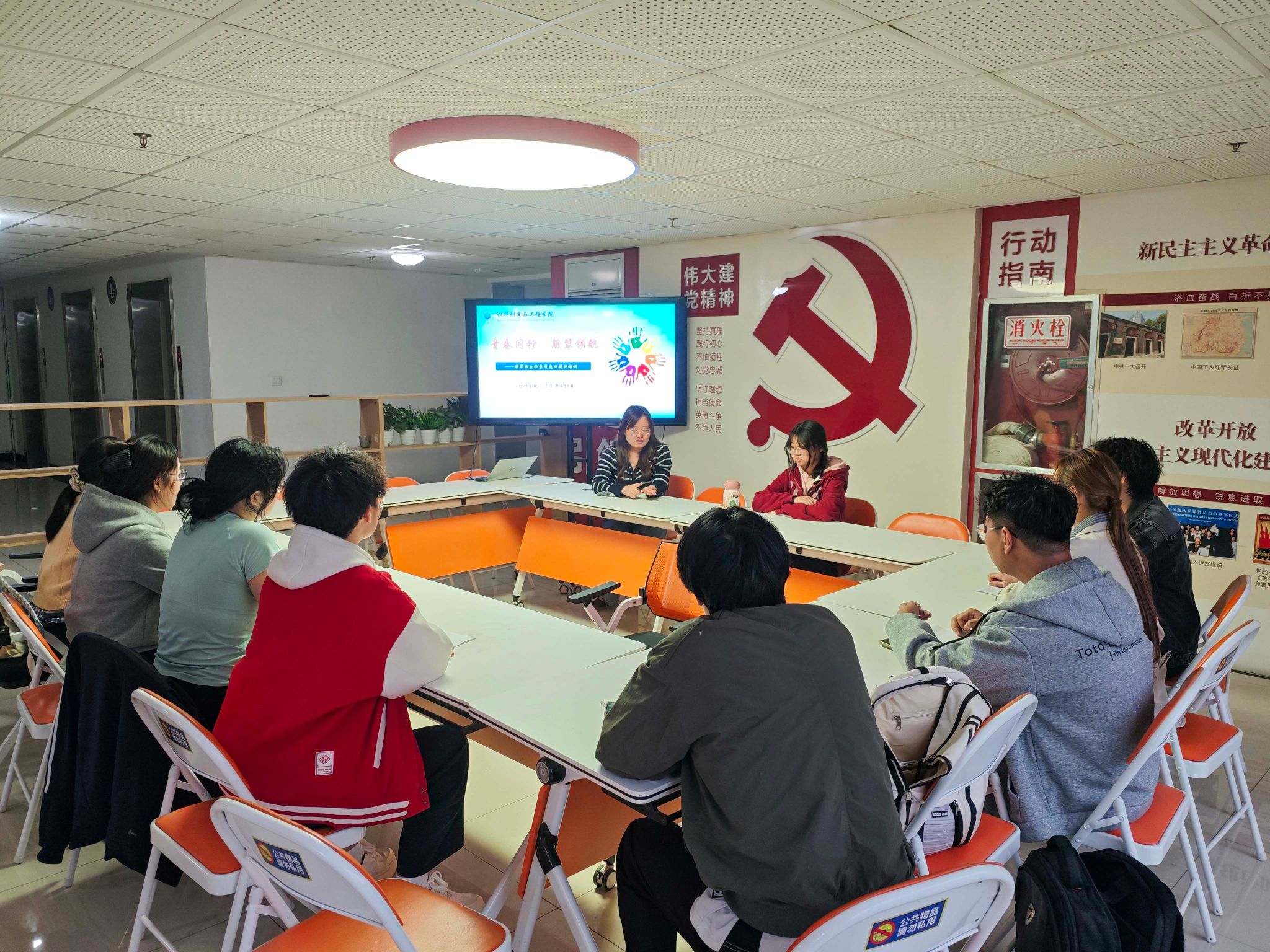 为扎实推进“党建+学风”建设,进一步提升朋辈班主任业务素养与工作效能,充分发挥其榜样引领与桥梁纽带作用,助力2025级学生夯实成长根基,4月8日,材料学院于一站式学生社区开展朋辈班主任“青春同行、朋辈领航”专题培训活动。活动由学院学风工作、学生党建工作专项负责老师张紫萱主持,全体朋辈班主任参加。