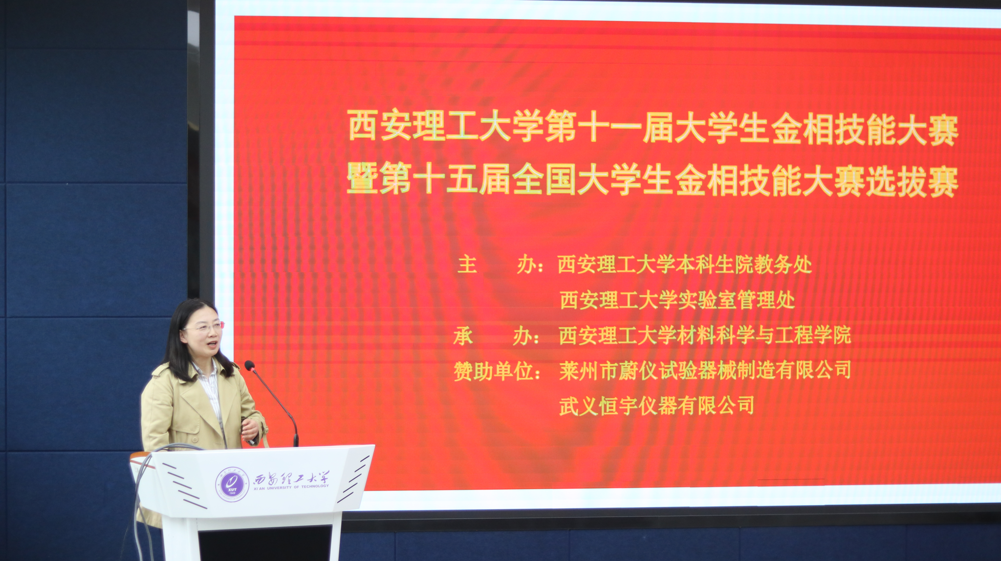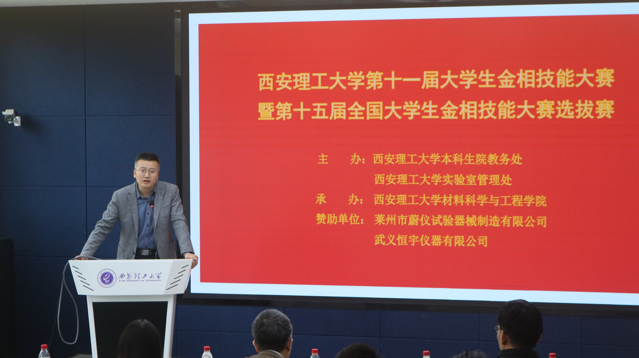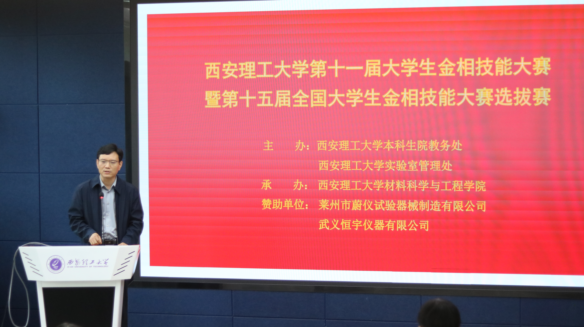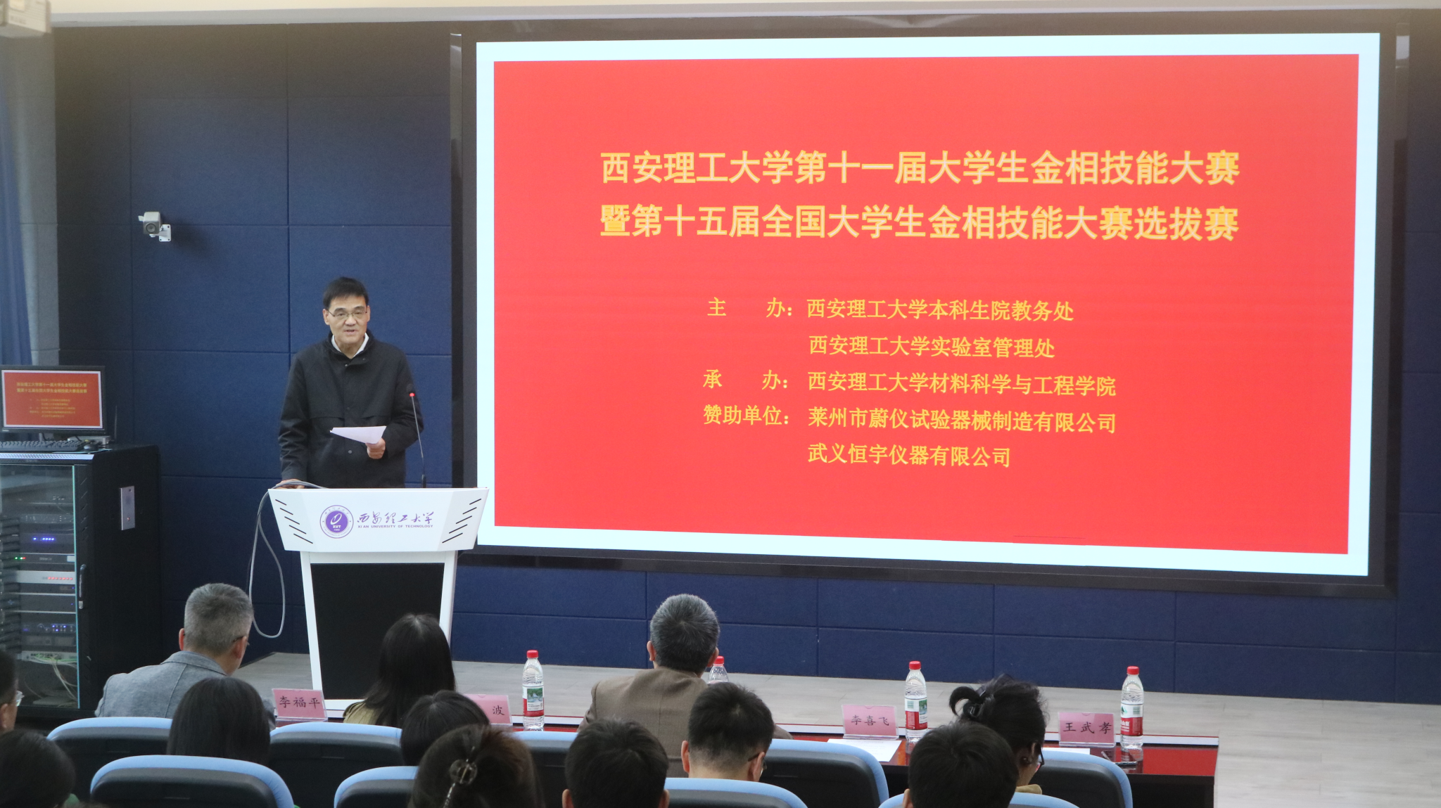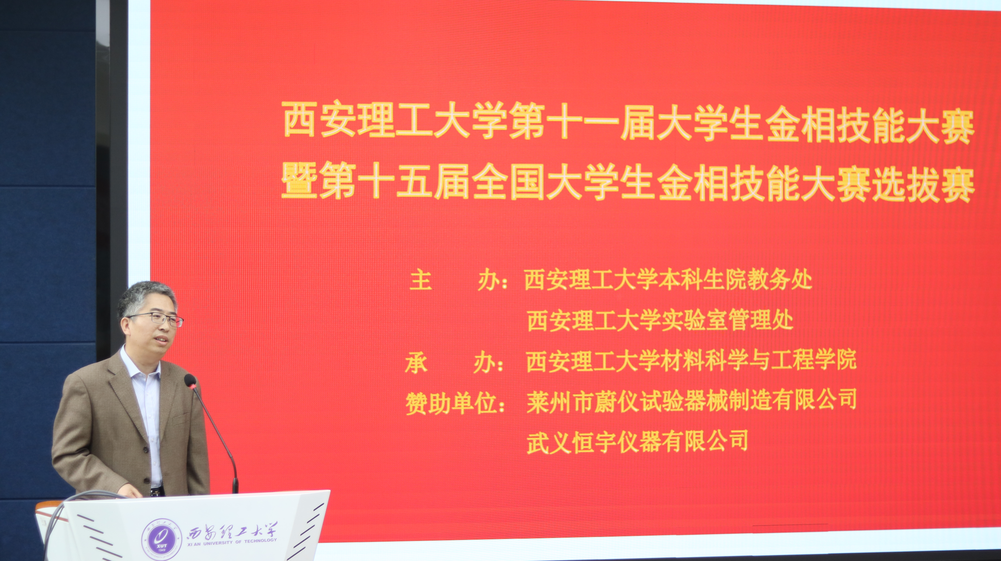 4月10日下午,西安理工大学第十一届“蔚仪-恒宇”杯金相技能大赛暨第十五届全国大学生金相技能大赛选拔赛,在金花校区1-302教室隆重举行。本次大赛由学校本科生院主办,材料科学与工程学院承办,以“匠心铸就卓越,实践赋能未来”为主题,既是全校学生专业技能的竞技比拼,更是学校弘扬工匠精神、助力国家新材料战略实施、落实创新型应用型人才培养使命的重要实践载体。