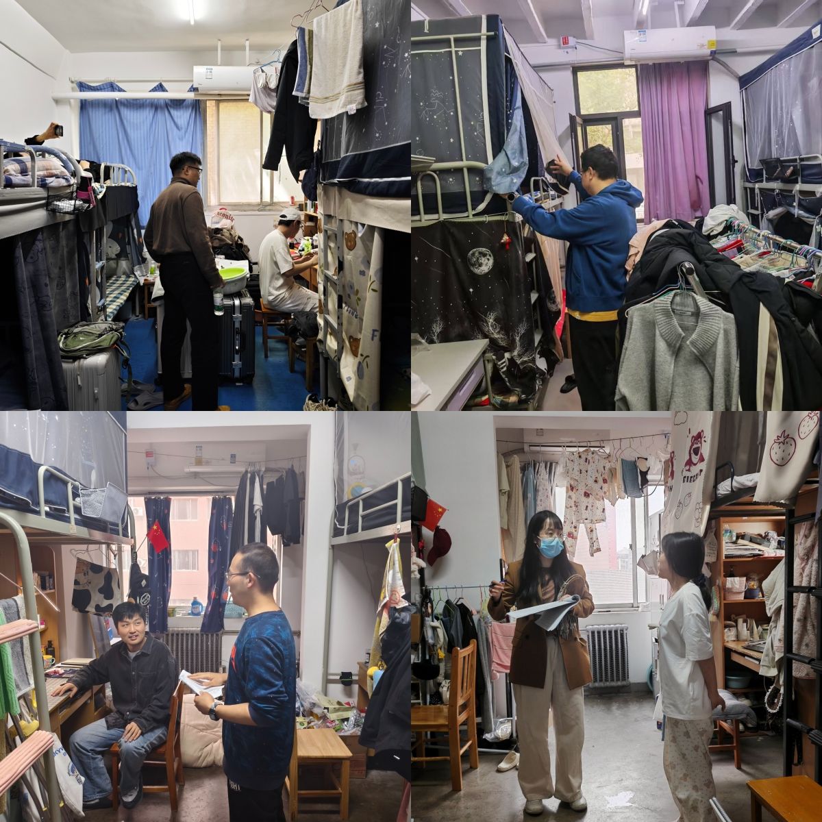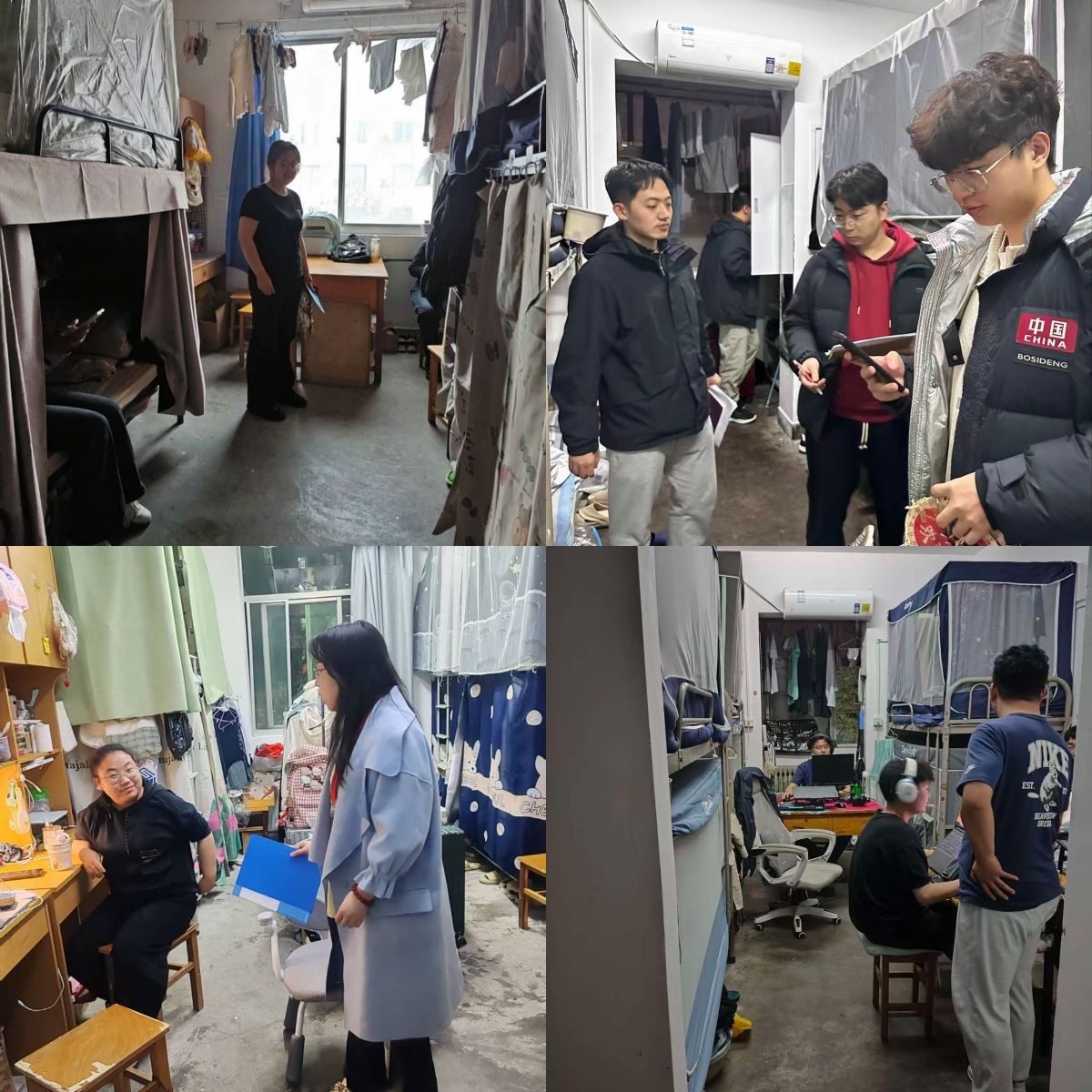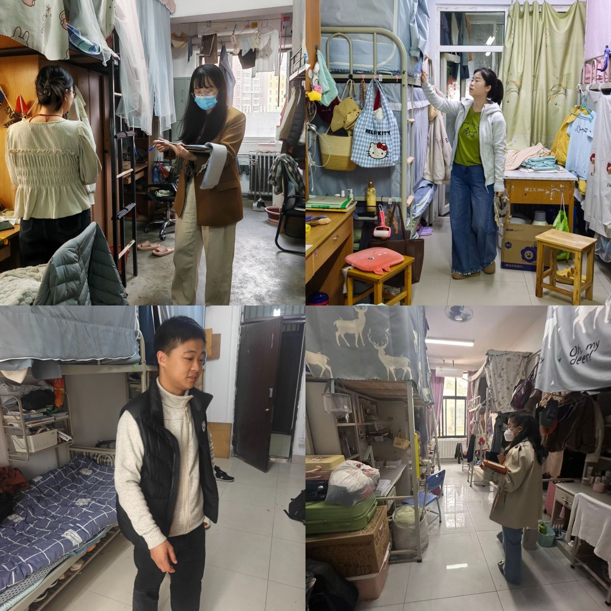 本次检查由全体辅导员和安全卫生检查小组联合参与、协同推进,形成“学生主导、教师赋能、全员参与”的良好格局,既彰显了青年学子的责任担当,又提升了宿舍安全管理实效。安全卫生检查小组提前制定详细检查方案,明确用电安全、消防隐患、内务卫生三大排查维度,检查过程中,采取“逐寝登记、现场拍照”的方式,对全院所有宿舍开展拉网式排查。全体辅导员全程深度参与检查,与学生检查小组并肩行动:一方面为小组成员提供专业支撑,针对排查中发现的复杂隐患现场指导研判;另一方面结合检查情况开展安全教育,解读宿舍管理规定,实现“排查隐患、指导整改、沟通育人”三位一体。