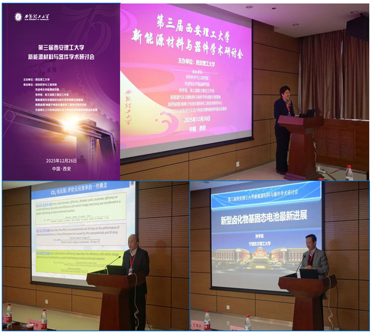 2025年12月26日,由西安理工大学主办、材料科学与工程学院与先进电化学能源研究院共同承办的“第三届西安理工大学新能源材料与器件学术研讨会”在西安理工大学金花校区学科2号楼报告厅顺利召开。张久俊院士、孙学良院士以及来自西安交通大学、西北工业大学、郑州大学、陕西科技大学的4位国家级人才和100余名高校师生参加会议。