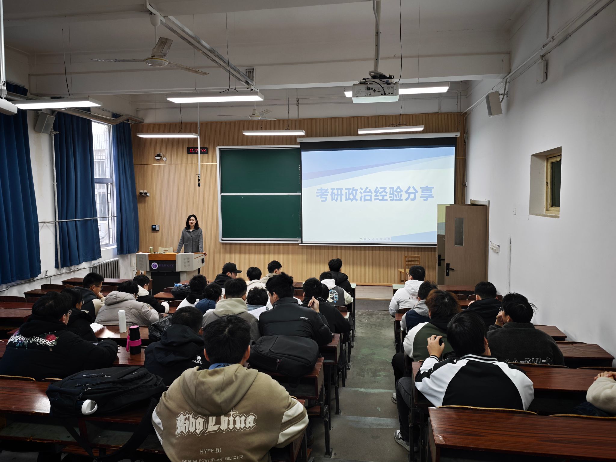 黑晓卉老师结合历年考研政治真题,系统剖析题型特点与趋势。她指出政治复习需“以理论为基础,以时政为脉络”,建议学生围绕大纲核心知识点构建框架,同时关注年度重大时事政策,强化分析题答题逻辑。王晓林老师则针对英语备考强调阅读理解和作文的针对性训练,并现场演示如何通过长难句拆分提升解题效率。辅导过程中,学生们积极提问,两位老师逐一解答复习中的共性难题,如时间分配、高频考点把握等。与会学生表示,辅导讲座不仅明确了复习方向,更缓解了备考焦虑。